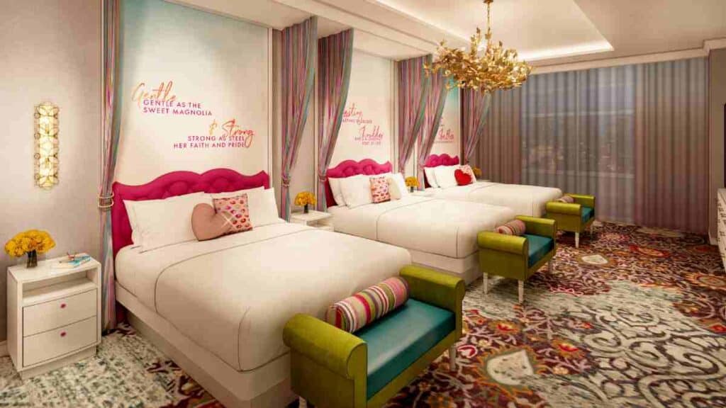 Dolly Parton’s SongTeller Hotel is designed as a reflection of Dolly’s warmth, storytelling, and signature style. With 245 uniquely designed rooms and suites, guests can expect a one-of-a-kind stay that combines Southern hospitality with artistic flair.